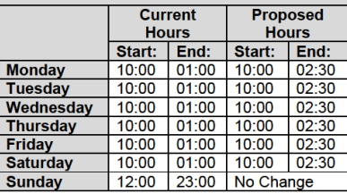 At the time of application, Sophie’s is a bar that wants to stay open an hour and a half later. Here’s their request: